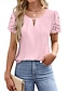 Mujer Camisa Camisa de manga corta Camisa de playa Remera de algodón Ojal Color sólido Plano Vacaciones Vintage Moda Media Manga Cuello Barco Tops largos Ropa de calle Playa Festivos Rosa Verano