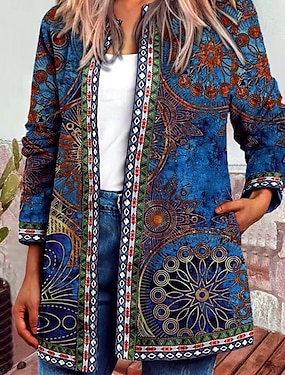 Mujer chaqueta Trabajo Estampado Geométrico Cómodo Elegante Ajuste regular Ropa de calle Manga Larga Otoño Azul cielo S