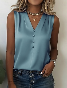 Mujer Satén Camiseta Camiseta superior Frunce Plano Elegante Moda Clásico Sin Mangas Cuello Barco Tops regulares Casual Diario Noche Azul Piscina Negro Blanco Albaricoque Beige Verano Primavera
