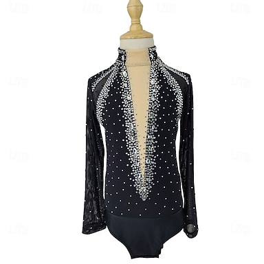 Malla de gimnasia rítmica para mujer y niña, para patinaje sobre hielo, teñido, alta elasticidad, para competición profesional, con cristales y diamantes de imitación, sin mangas.