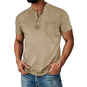 Hombre Henley Shirt Camisa 100% algodón con lavado ácido Manga Corta Plano Retro Antiguo Casual Estilo retro Afligido Henley Casual Verano Primavera Otoño Negro Gris Vino Camiseta Henley