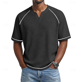 Hombre Camiseta con diseño de gofre Camiseta superior Manga Corta Escote en Pico Verano Color sólido Con Texturas Moda Design Casual Mangas raglanes Casual Diario Exterior Bleu Ciel Negro Verde Claro