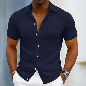 Hombre Camisa Camisa de verano Abotonar la camisa Cardigan Negro Amarillo Morado Azul Oscuro Manga Corta A Rayas Moda Diseño Casual Ropa Cotidiana Agujero Ropa Moderno Contemporáneo moderno