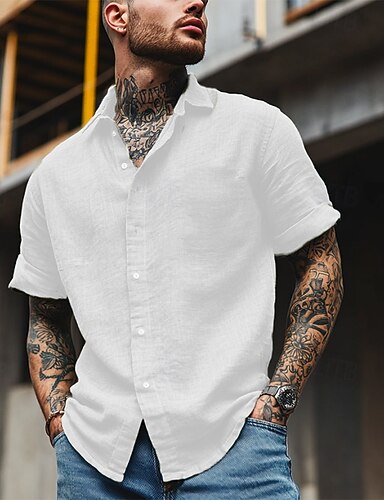 Hombre Camisa Camisa de lino Camisa de verano Ropa de playa Abotonar la camisa Color sólido Vacaciones Maldición Blanco Rosa Verde Trébol Azul claro Manga Corta Cuello Verano Primavera verano Ropa