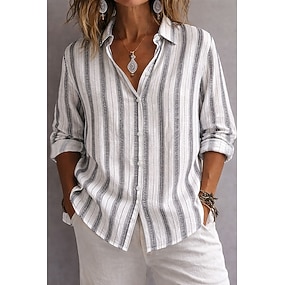 Mujer Camisa Botones A Rayas Diario Elegante Básico Manga Larga Cuello Camisero Tops regulares Diario Trabajo Festivos Gris Primavera Otoño