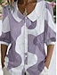 Mujer Blusa Volante Estampado Graphic Geométrico A Rayas Vintage Diario Elegante Manga 3/4 Escote en Pico Tops regulares Diario Festivos Ropa de vacaciones Azul Piscina Rosa Caqui Gris Verano