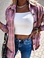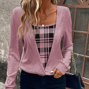 Mujer Camisa Camisa con botones Camisa casual Blusa Botones Plaid Elegante Clásico Moderno Manga Larga Cuello Camisero Tops regulares Diario Festivos Noche Azul Piscina Rosa Vino Verano Primavera