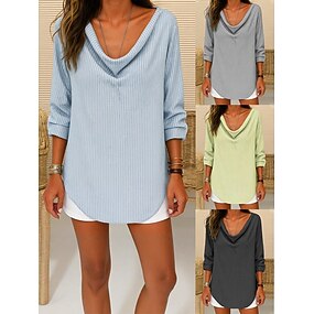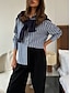 Mujer Blusa Lino de algodón sintético Estampado A Rayas Elegante Casual Manga Larga Cuello vuelto holgado Tops regulares Diario Azul Piscina Negro Verde Trébol Gris Verano Primavera Otoño
