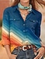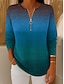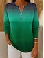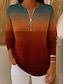 Mujer Blusa Cremallera Estampado Ombre Vacaciones Elegante Casual Manga Larga Cuello Barco Tops regulares Diario Azul Piscina Rojo Naranja Verde Trébol Verano Primavera Otoño