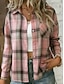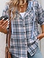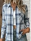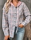 Mujer Blusa Botones Estampado Plaid Elegante Casual Manga Larga Con Capucha Tops regulares Diario Azul Piscina Rosa Caqui Primavera Otoño Invierno