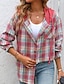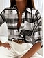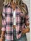 Mujer Blusa Botones Estampado Plaid Elegante Casual Manga Larga Cuello Camisero Tops regulares Diario Negro Rosa Primavera Otoño Invierno