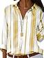 Mujer Camisa Blusa Botones A Rayas Elegante Clásico Moderno Manga Larga Escote en Pico Tops regulares Diario Festivos Noche Azul Piscina Amarillo Rosa Verano Primavera