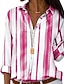 Mujer Blusa Botones Estampado A Rayas Elegante Casual Manga Larga Cuello Camisero Tops largos Diario Azul Piscina Rosa Gris Primavera Otoño