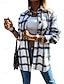 Mujer Camisa Botones Estampado Plaid Elegante Casual Manga Larga Cuello Camisero Tops regulares Diario Blanco Caqui Verano Primavera