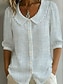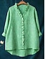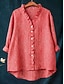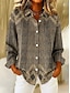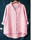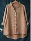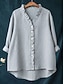Camisa de Mujer de Lino Similar Transpirable Ligera Blusa Tunic Con Botones Cuello Manga Larga Cuadros Casual Tops Regulares Trabajo Diaria Impresión Gris Primavera Otoño Invierno