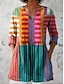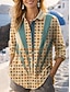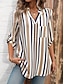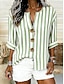Mujer Blusa Estampado Graphic A Rayas Bohemia Vintage Diario Manga 3/4 Escote en Pico Tops regulares Diario Festivos Ropa de vacaciones Azul Piscina Amarillo Morado Verde Trébol Verano Primavera Otoño