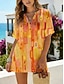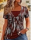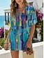 Mujer Camisa Camisa casual Camisa de playa Blusa Estampado Geométrico Bohemia Elegante Moderno Manga Corta Escote en Pico Tops regulares Diario Festivos Noche Azul Piscina Amarillo Vino Morado Verano