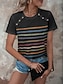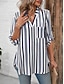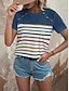 Mujer Blusa Estampado A Rayas Elegante Manga 3/4 Cuello Barco Tops regulares Diario Festivos Negro Rojo Azul Marino Morado Fucsia Verano