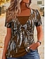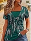 Mujer Camiseta Camiseta superior Retazos Estampado Bloque de color Moda Elegante Casual Manga Corta Cuello Barco Tops regulares Diario Noche Fin de semana Azul Piscina Negro Vino Verde Trébol Café