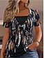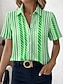 Mujer Camisa Botones Estampado Graphic Geométrico Vintage Elegante Moderno Manga Corta Cuello Camisero Tops regulares Diario Azul Piscina Rosa Morado Verde Trébol Verano Primavera