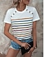 Mujer Camisa Blusa Retazos Botones A Rayas Elegante Clásico Moderno Manga Corta Cuello Barco Tops regulares Diario Festivos Noche Azul Piscina Negro Blanco Vino Verano Primavera