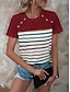Mujer Camisa Blusa Volante Estampado A Rayas Casual Manga Corta Escote en Pico Tops regulares Diario Azul Piscina Rojo Azul Marino Marrón Verde Trébol Verano