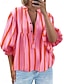 Mujer camisa boho Volante Graphic A Rayas Elegante Vintage Diario Manga Larga Escote en Pico Tops regulares Diario Trabajo Festivos Azul Piscina Rosa Rojo Marrón Verde Trébol Verano Primavera Otoño