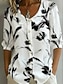 Blusa de Mujer Festival de Música Lino Ligera Transpirable Túnica Cuello en V Manga Larga Boho Casual Tops Gráfica Geométrica Elegante Vintage Tropical Regular Tops Diario Impresión Negro y Blanco