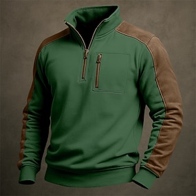 Hombre Sudadera Pull-over Sudadera con un cuarto de cremallera Negro Vino Verde Trébol Caqui Cuello Mao Plano Retazos Bloque de Color Deporte Casual Diario Ropa de calle Fresco Ropa deportiva