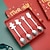 Juego de tenedor y cuchara navideños de color dorado de 4 piezas.