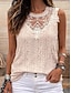 Mujer Camiseta sin mangas Encaje Retazos Plano Elegante Moda Clásico Sin Mangas Cuello Barco Tops regulares Diario Noche Fin de semana Negro Blanco Albaricoque Verano Primavera