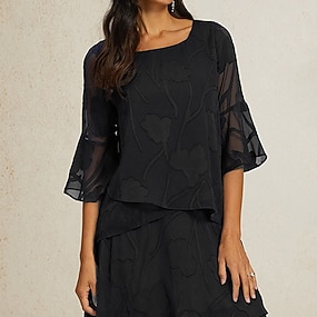 Mujer Camisa de encaje Blusa Tops elegantes Tops de gasa Costura asimétrica Color sólido Floral Flor Elegante Manga 3/4 Campana Escote Barco Tops regulares Diario Trabajo Invitado a la boda Color