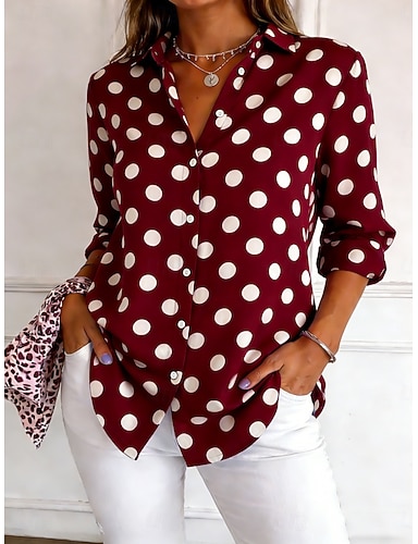Mujer Camisa Camisa con botones Camisa casual Camisa de playa Estampado Graphic A Lunares Elegante Clásico Casual Manga Larga Cuello Camisero Tops regulares Diario Festivos Noche Azul Piscina Negro
