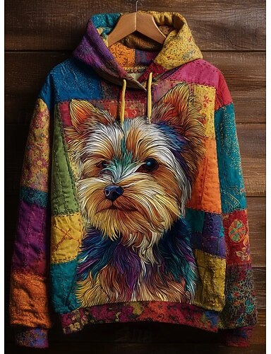 Mujer Sudadera con capucha Pullover Retazos Estampado Graphic Perro Elegante Cálido Activo Manga Larga Con Capucha Tops regulares Casual Calle Uso Diario Naranja Primavera Otoño Invierno