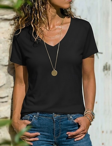 Mujer Blusa Color sólido Básico Casual Manga Corta Escote en Pico Tops regulares Diario Azul Piscina Negro Blanco Rojo Azul Marino Verano
