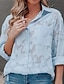Mujer Camisa casual Abotonar la camisa Blusa Bolsillo Botones Encaje de ilusión Color sólido Diario Elegante Casual Manga Larga Cuello Vuelto Tops regulares Festivos Noche Ropa de vacaciones Azul