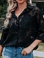 Mujer Camisa Blusa Tops de manga larga Malla Plano Elegante Clásico Moderno Manga Larga Cuello Alto Tops regulares Diario Fiesta Festivos Negro Verano Primavera