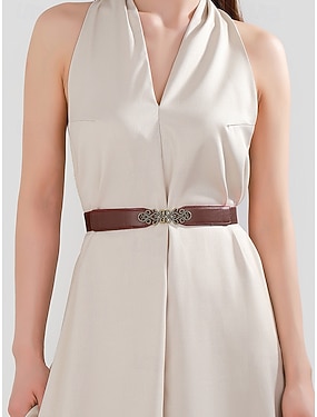 Cinturón elástico vintage para mujer con hebilla de bronce en forma de pergamino. Cinturón de piel sintética para vestidos y blusas, estilo elegante para uso diario y ocasiones formales.