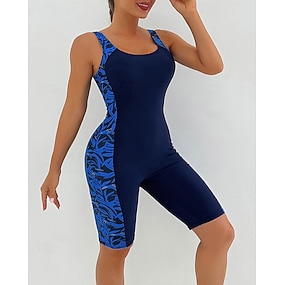 Mujer Bañadores Una pieza Bermudas Traje de baño Traje de baño de una pieza con pantalones cortos Espalda al Aire Vacaciones Ropa de playa Graphic Escote en U Sin Mangas Trajes de baño