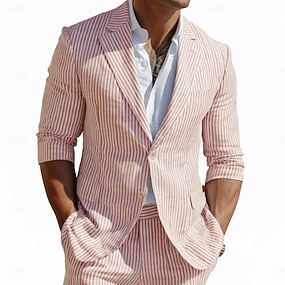 De los hombres Trajes de Lino boda en la playa Rosa Azul cielo Verano Traje Solapa de Pico Casual Estilo callejero Color sólido Estándar Juego de 2 piezas Recto 1 botón