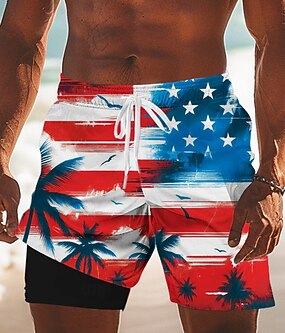 Hombre Color Camuflaje Bandera estadounidense de los Estados Unidos 4 de julio, 250 aniversario de Estados Unidos Pantalones cortos forrados Bañador 2 en 1 Pantalones de Natación Media cintura
