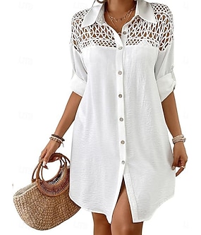 Mujer Mini vestido Vestido blanco vestido de playa Vestido negro Vestido de Camisa Elegante Moda Clásico Diario Exterior Playa Holgado Plano Manga Larga Cuello Camisero Negro Blanco Verano Primavera