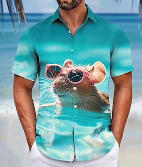 Hombre Animal Gracioso Carpincho Camisa camisa hawaiana Abotonar la camisa Manga Corta Hawaiano Complejo Vacaciones Festivos Ropa de playa Verano Primavera Cuello Vuelto Impresión 3D camisas con