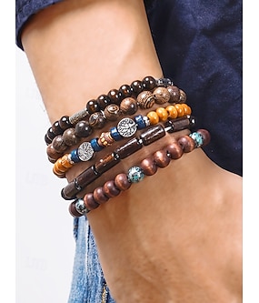 Juego de pulseras de cuentas de madera multicapa para hombre, joyería hecha a mano de estilo bohemio para ropa informal y de playa.