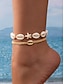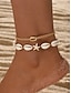 Conjunto de tobilleras bohemias con conchas para mujer, multicolor, ajustable, perfecto para vacaciones en la playa y uso diario informal.