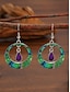 Pendientes colgantes de lágrima bohemios para mujer con detalles de piedras preciosas de colores, joyas de estilo étnico vintage para ropa informal, fiestas y festivales.