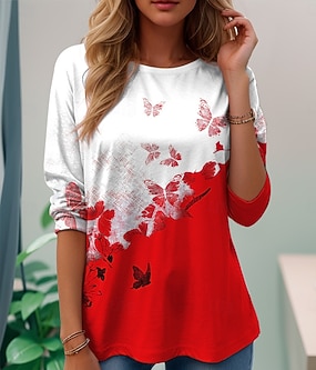 Mujer Camiseta Estampado Floral Casual Manga Corta Escote Redondo Tops regulares Diario Negro Rojo Morado Marrón Verde Trébol Verano