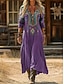 Mujer vestido largo vestido largo Vestido bohemio Vestido informal Vestido Étnico Vintage Diario Exterior Vacaciones Ajuste regular Floral Manga Larga Escote en Pico Morado Verano Primavera Otoño