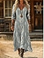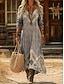 Mujer Vestido largo maxi Vestido bohemio Vestido vintage Vestido informal Vintage Diario Exterior Vacaciones Ajuste regular Floral Manga Larga Escote en Pico Gris Primavera Otoño