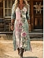 Mujer Vestido maxi Vestido bohemio Vestido informal Vestido de una línea Vestido Estampado Vintage Exterior Vacaciones Fin de semana Ajuste regular Floral Graphic Manga Corta Escote en Pico Verde